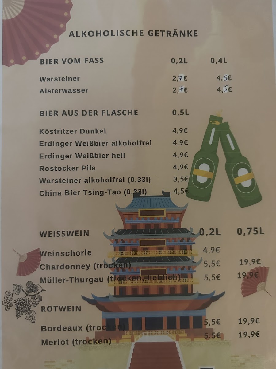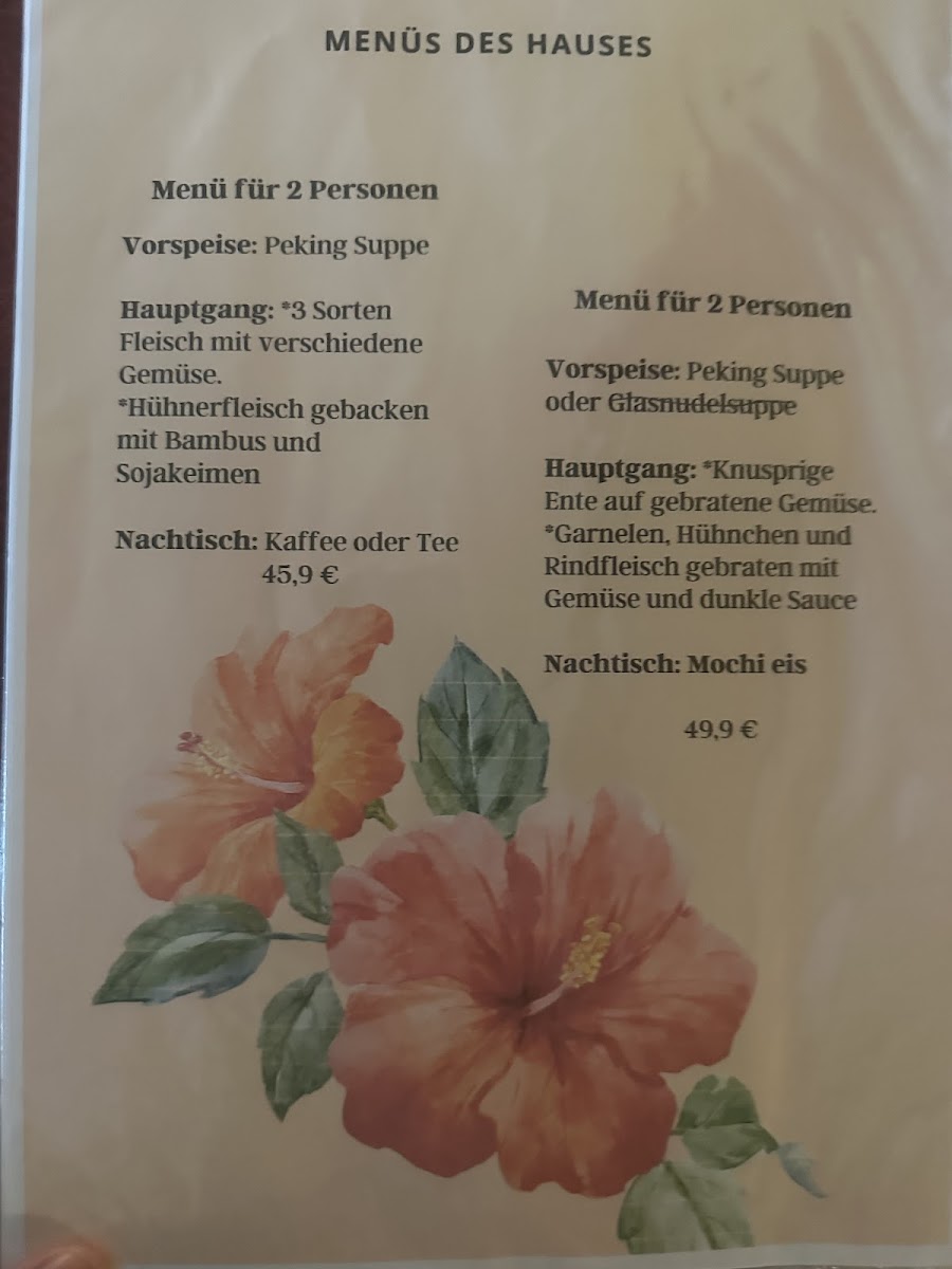 Son China-Restaurant, located at Ostseeallee 22 in Kühlungsborn, Germany, offers a vibrant dining experience with an extensive menu that caters to diverse tastes. Guests appreciate the warm ambiance and friendly service, as highlighted by customer reviews. While dishes like crispy duck have garnered praise, the restaurant's commitment to quick service enhances the overall experience. Whether you're craving classic Chinese flavors or seeking new culinary adventures, Son China-Restaurant is a delightful spot worth visiting. With its welcoming atmosphere and varied options, it's a place to indulge and create memorable dining moments.