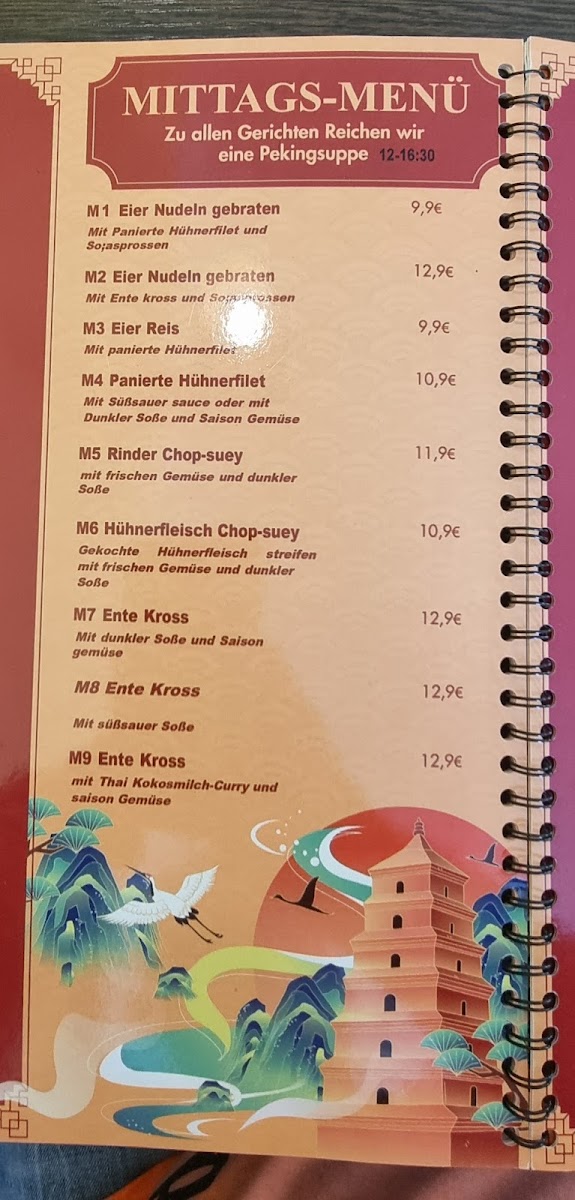 “ Man kann ganz gut dort essen. Ich wollte ein Gericht mit Rindfleisch, leider hatten sie dieses an diesem Tag nicht. Ich gabe dann Ente gegessen. War tatsächlich sehr knusprig, leider nur lauwarm. Portion war ausreichend. Das Essen kam recht zügig, die Bedienung freundlich. Ich kann das Lokal weiterempfehlen ”